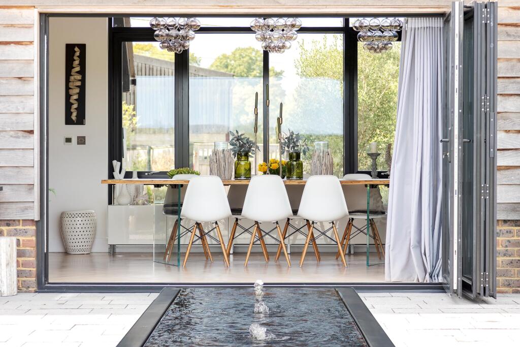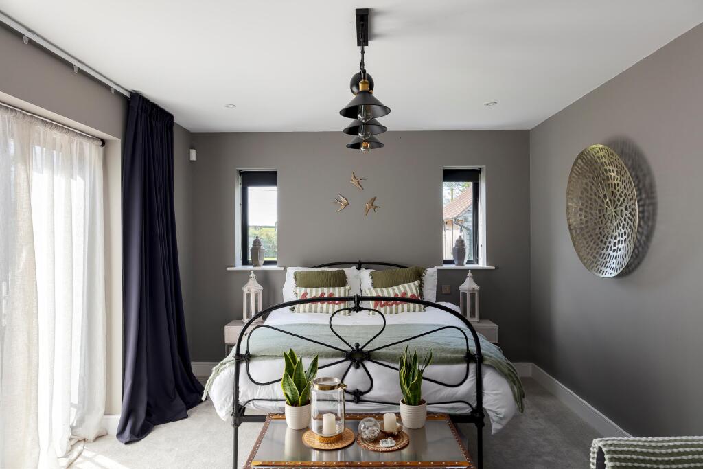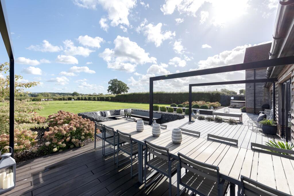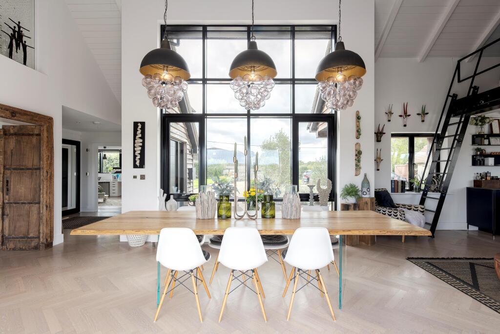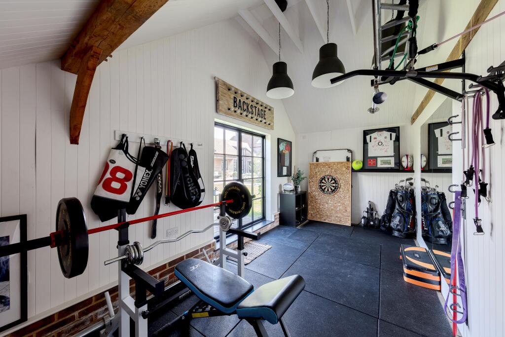Chellows Barn is a beautifully presented detached property located in the sought-after area of Crowhurst, Surrey. The house features five bedrooms, three bathrooms, and a modern, stylish interior. The property also benefits from a large garden, a gym, and ample parking. While the price is high for the area, the condition and features of the property justify the premium.