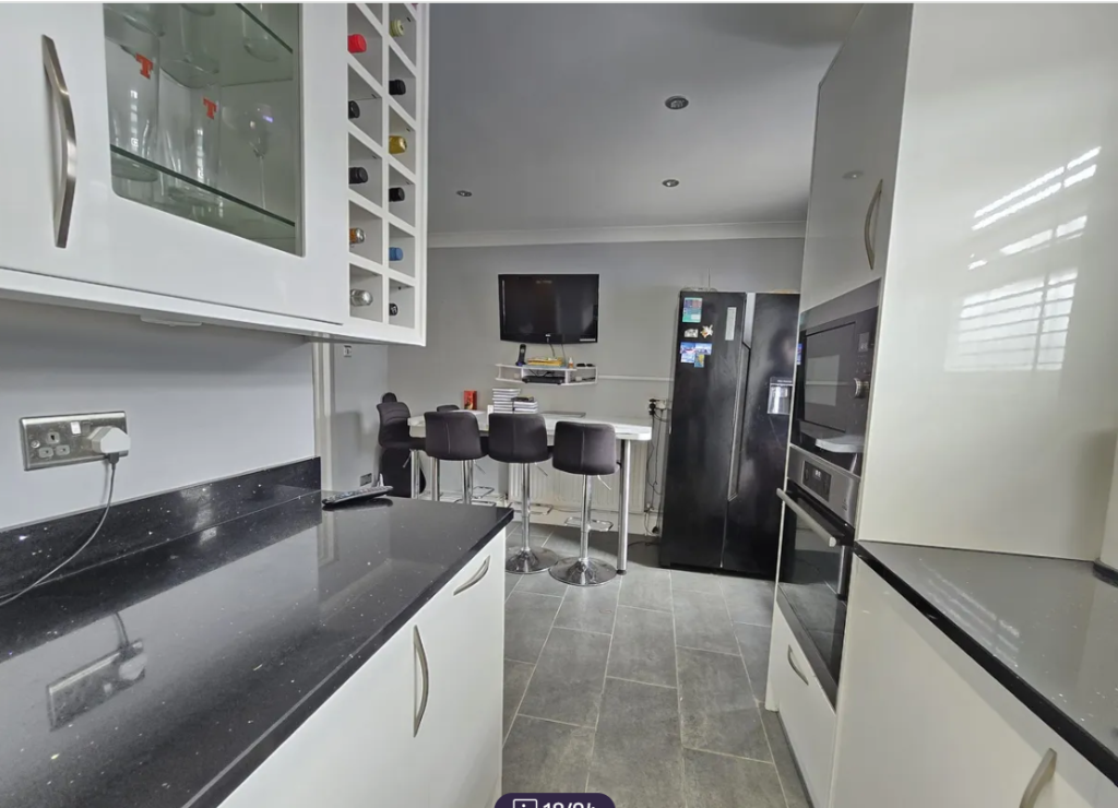 This property offers a modern kitchen, sunny living area, and a spacious garden with an additional two-bedroom unit. It features energy-efficient upgrades and is conveniently located near schools, shops, and Dagenham East Underground Station.