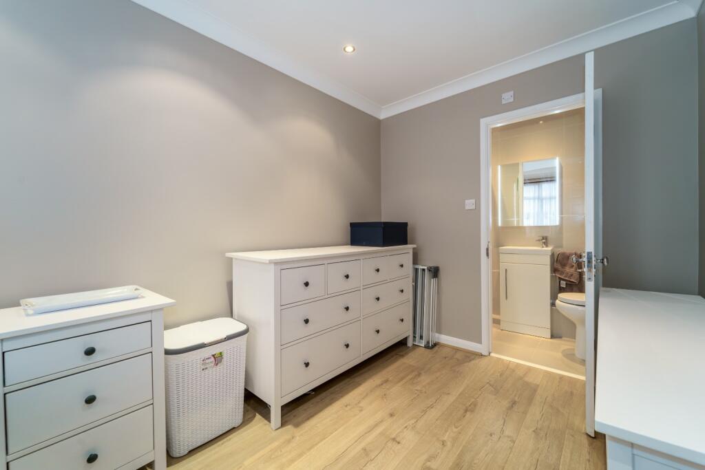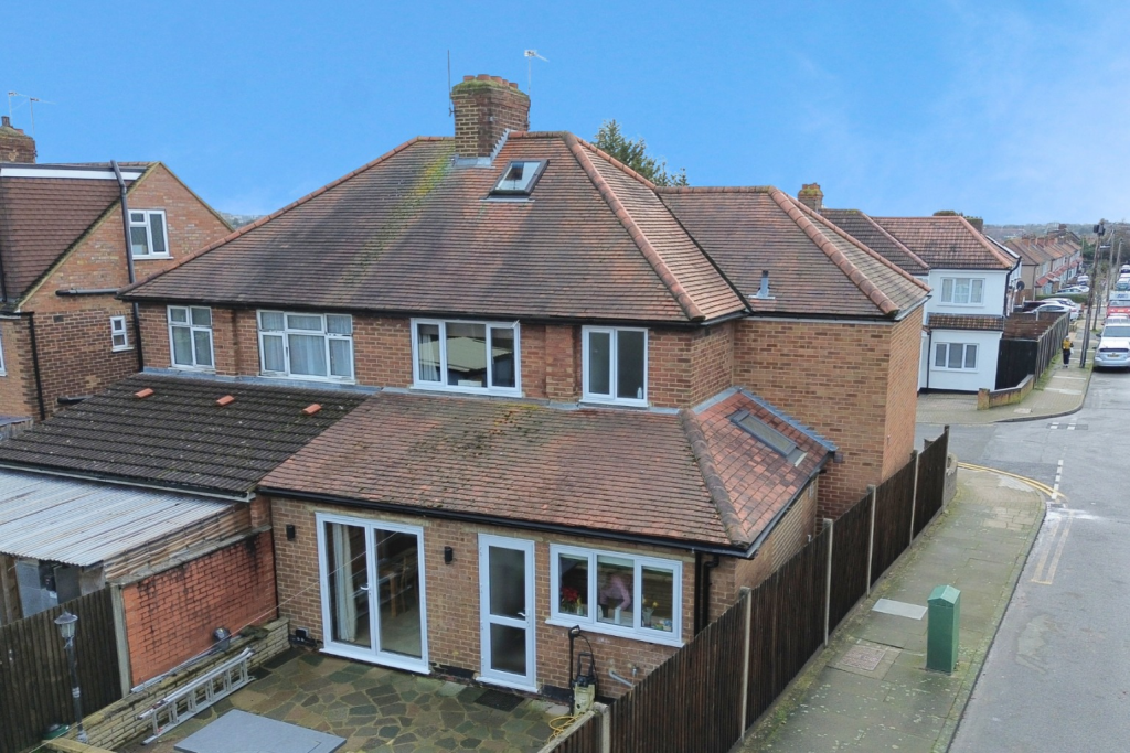 A chain free, extended four bedroom, semi detached house with a groundfloor ensuite bedroom, a further three doubles upstairs and an additional loft room. Large living space and extended kitchen, driveway parking and space to add a garden room with side access due to being a corner plot.