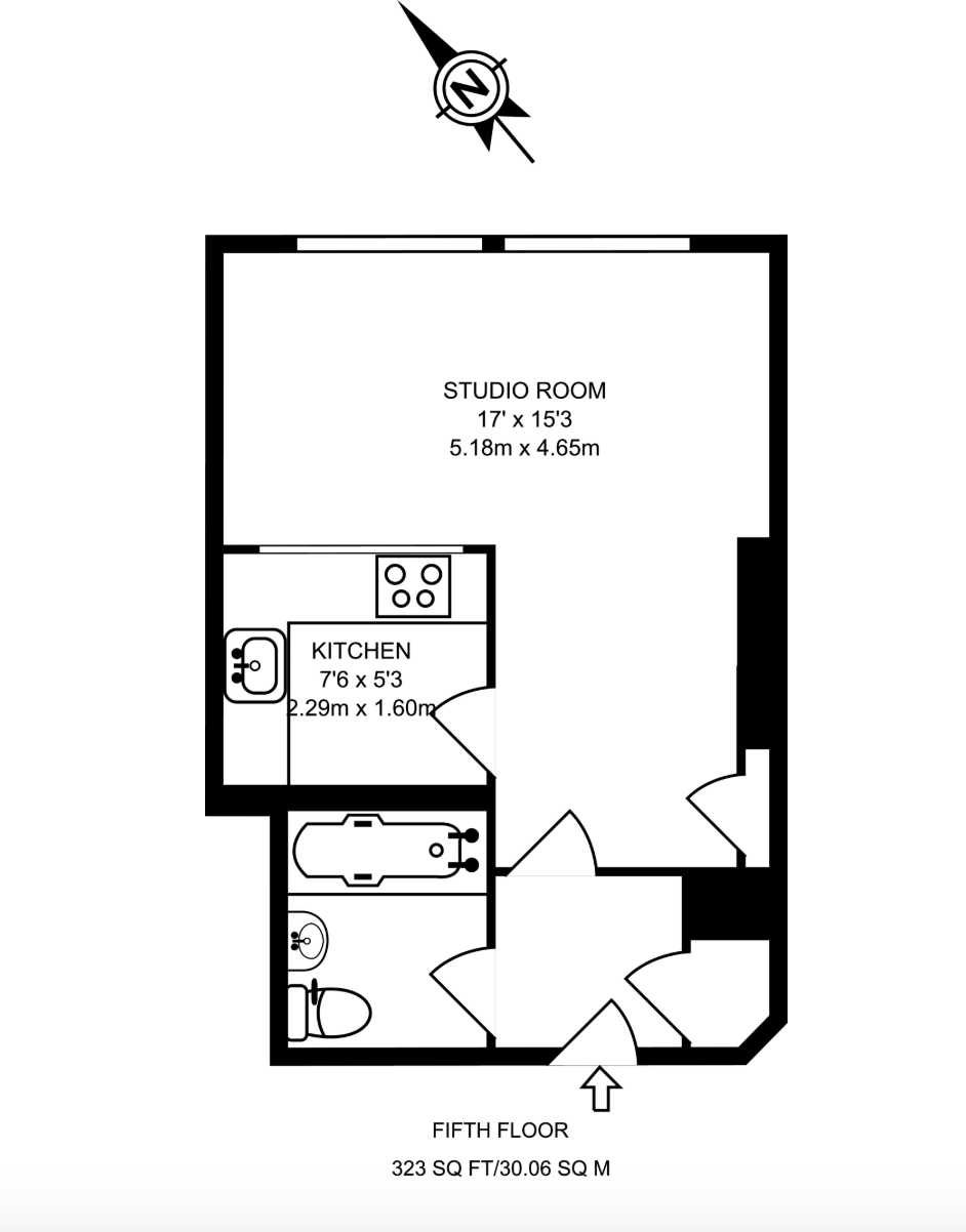 Spacious and modern 5th floor (with lift) studio apartment, in an excellently located building for UCL, Regents Park, shops, restaurants and transport links. Available now.
