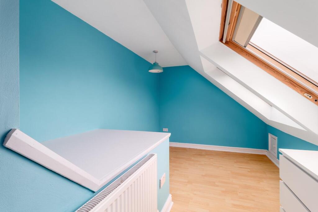NO ONWARD CHAIN Spread across three floors, the home features two generously sized bedrooms, including a light-filled dual-aspect main bedroom on the first floor and a second bedroom with Velux windows on the top floor, ideal as a guest room, home office, or additional living space. The brigh...