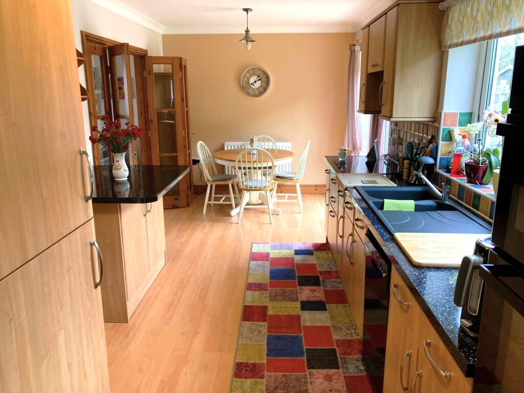 A Freehold Detached Four Bedroom Family House with En-Suite Facilities, Other Family Bathroom, Modern Fitted Kitchen/Dining Room, Utility Room, Oil Central Heating, Garage(and room for further garage). Easy to maintain Garden to Front and Rear, in convenient location in the centre of the village.