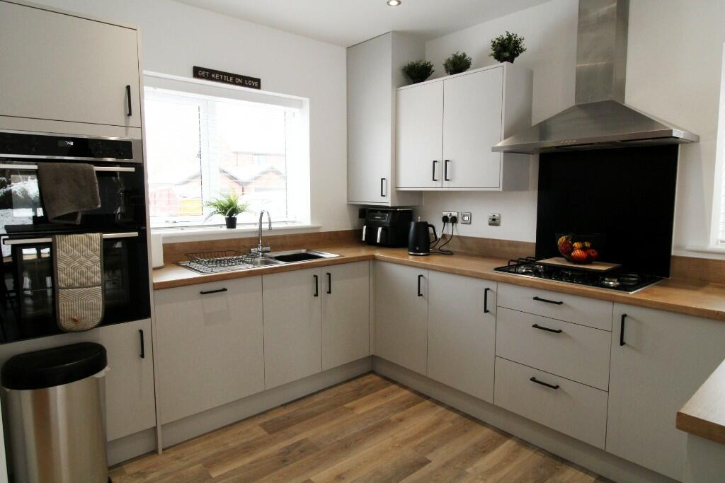 A STUNNING four-bedroom detached home with modern, LUXURIOUS finishes. This GORGEOUS home boasts bright and spacious living accommodation, an attractive landscaped south facing garden, detached single garage and a large driveway with parking for multiple cars. A PERFECT family home!