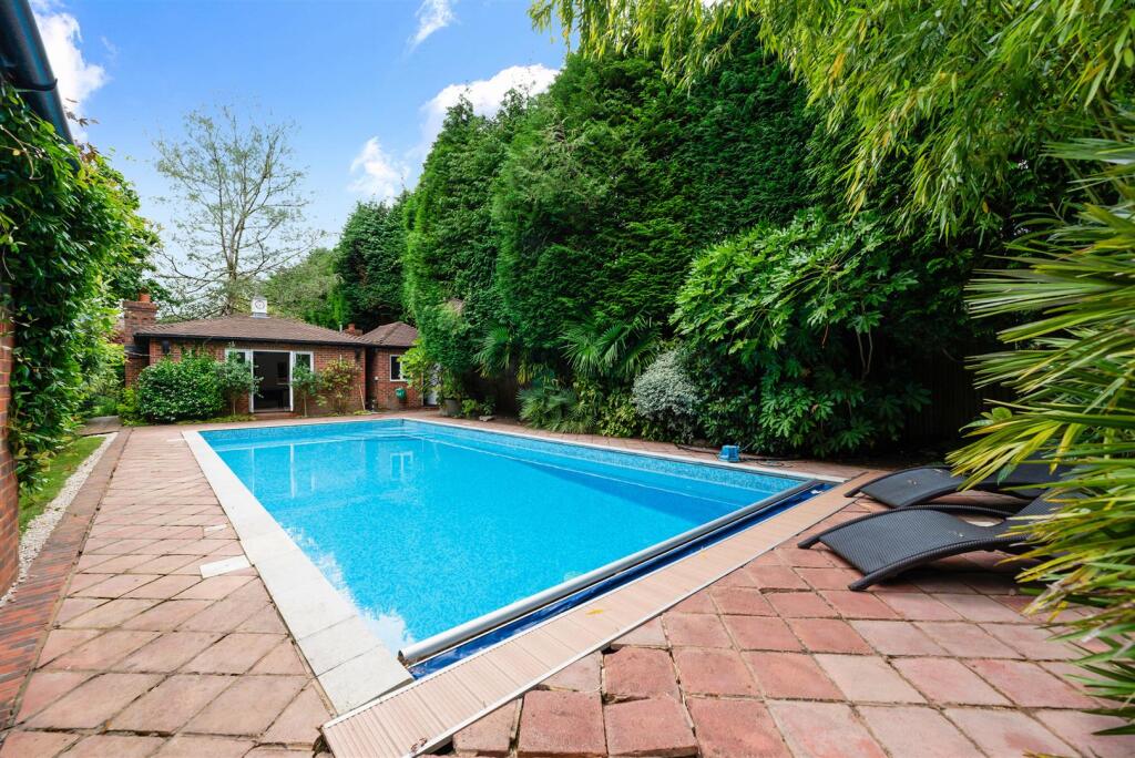 This is a substantial detached property located in the sought-after area of Kingswood, Surrey. The house features 5 bedrooms, 3 bathrooms, a large garden with a swimming pool and an outdoor kitchen. The property also benefits from good transport links and proximity to reputable schools. While the house is generally well-maintained, some areas could benefit from modernisation. The asking price is high compared to the average in the area, but the size and features of the property may justify the premium.