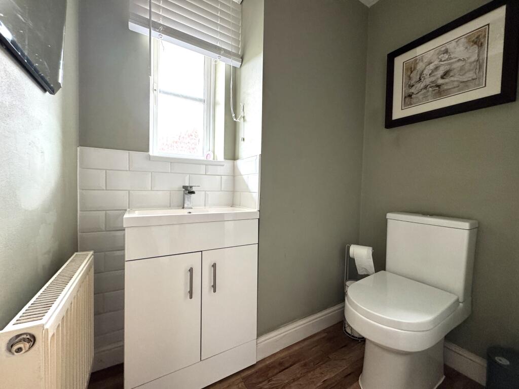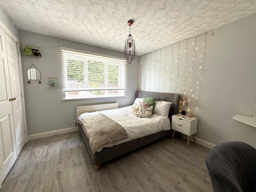 This is a detached property located on Bretby Hollow, Swadlincote. It features four bedrooms and two bathrooms. The property is listed with Newton Fallowell. The images suggest the property is in generally good condition, with a modern bathroom. The kitchen could use some updating. The property also benefits from a garden and a garage. Nearby schools include Newhall Infant School and William Allitt School. Transportation links are available via Willington and Burton-On-Trent stations.