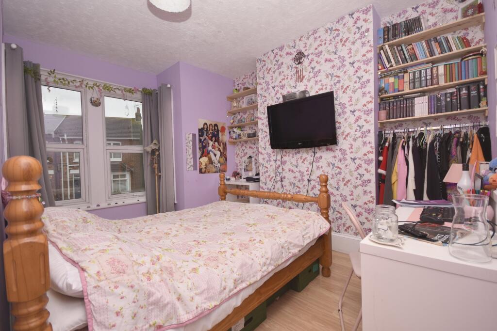 This terraced property on Ramsgate Road, Margate, presents a blend of traditional charm and modern updates. The house features five bedrooms and one bathroom. The modern kitchen and bathroom offer contemporary comfort, while the fireplace adds a touch of character. The property also benefits from a garden, providing outdoor space. Located within proximity to local schools and transportation, this property is suitable for families and commuters. While generally well-maintained, some areas could benefit from cosmetic improvements.