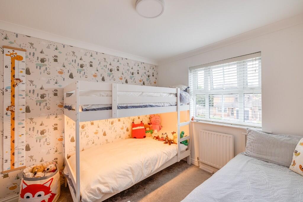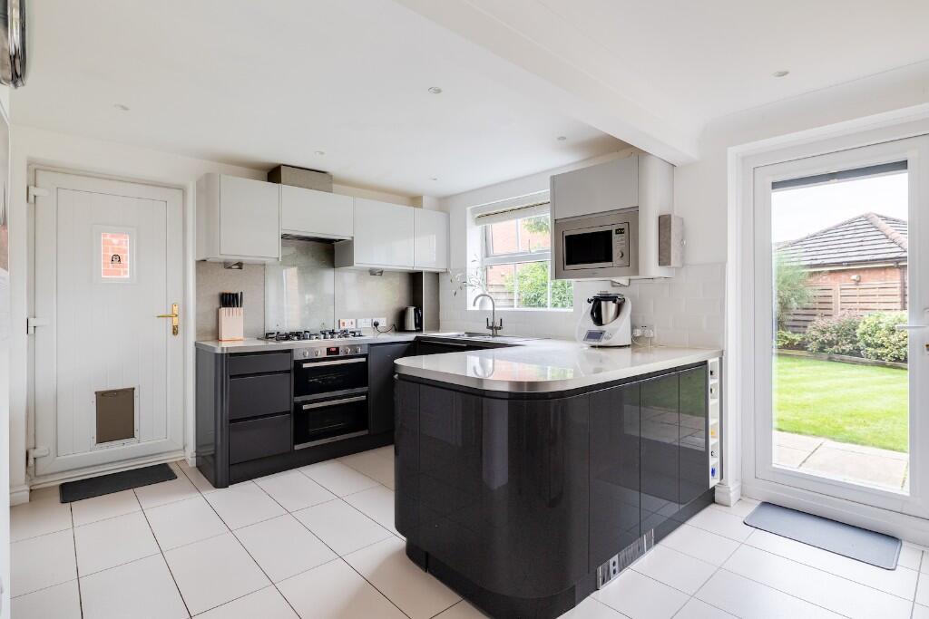 This is a detached property in Sandbach, Cheshire. It features three bedrooms and two bathrooms. The property is listed with Houz Hunter and is priced at £325,000. Key selling points include a private south-facing garden, en-suite bathroom, parking for three cars, and a garage. The property appears to be in good condition, with a modern kitchen and bathrooms. The location offers convenient access to local schools and transportation links. While the square footage is below average for the area, the property’s desirable features and good condition could make it an attractive option for potential buyers.