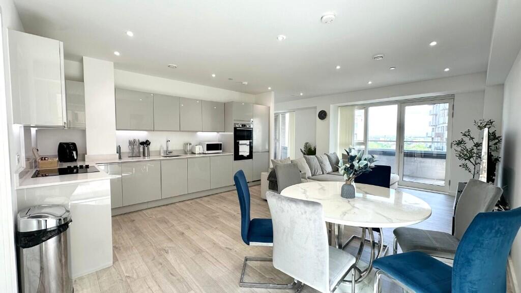 Set on the 8th floor of the sought-after Brunel Street Works development, this exceptional, chain-free three-bedroom, two-bathroom apartment offers expansive living space, modern finishes, and an abundance of private outdoor areas.