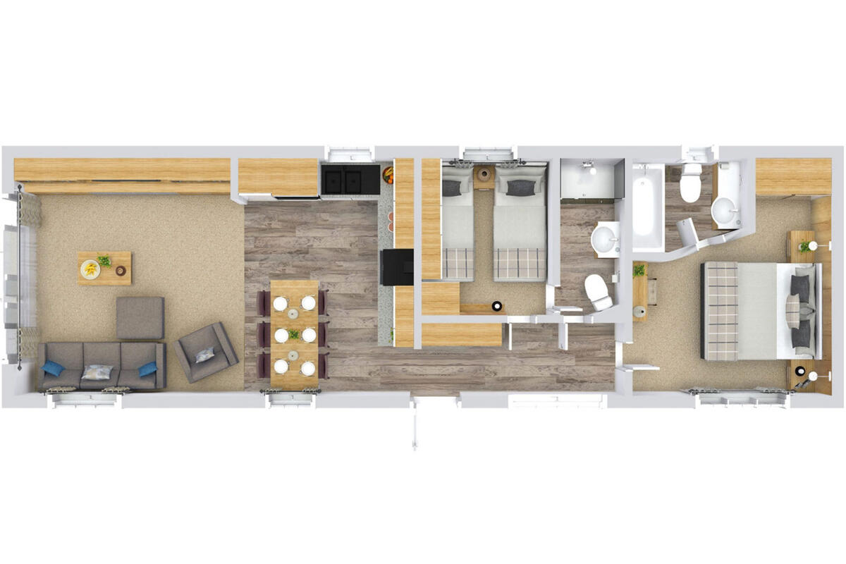 The brand new Lodges are the epitome of chic. With open plan living, dining/kitchen space, gentle co-ordinated colours, designer lighting, comfy sofas, and fully fitted kitchen. Prices from: £89,995