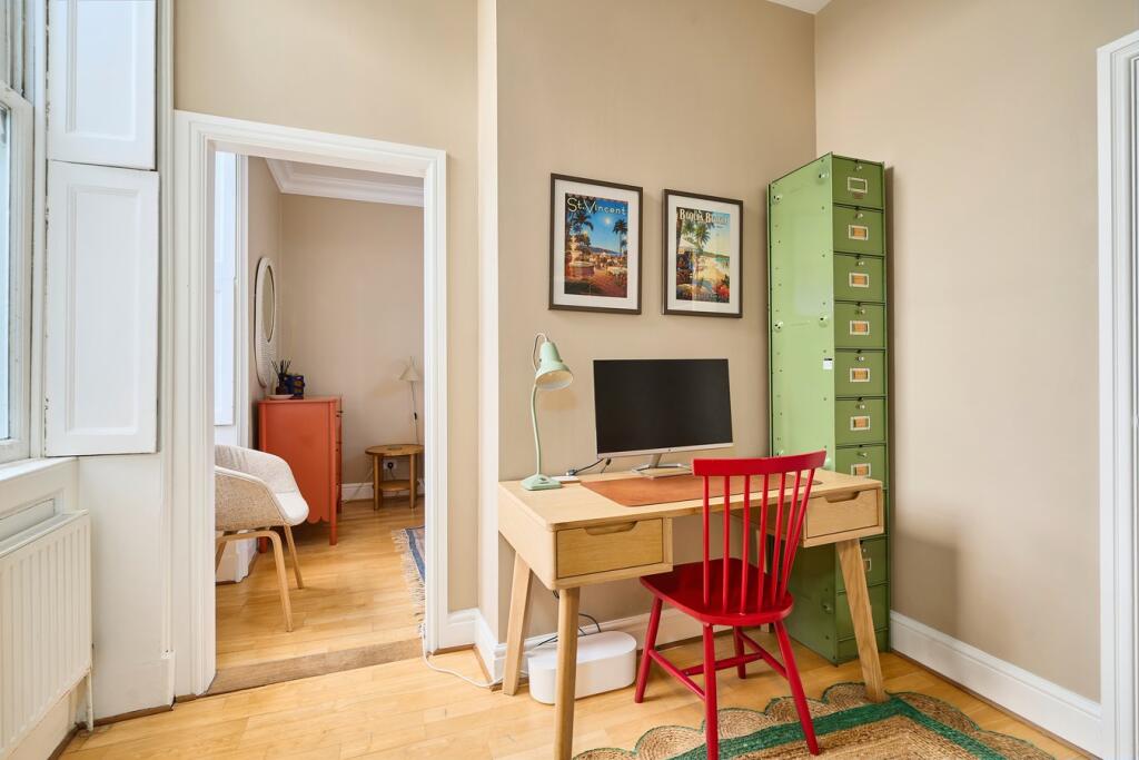 A unique opportunity to purchase a ground floor, central apartment with 40ft+ garden, no chain and private parking. Offering 2 bedrooms, high ceilings and period features.