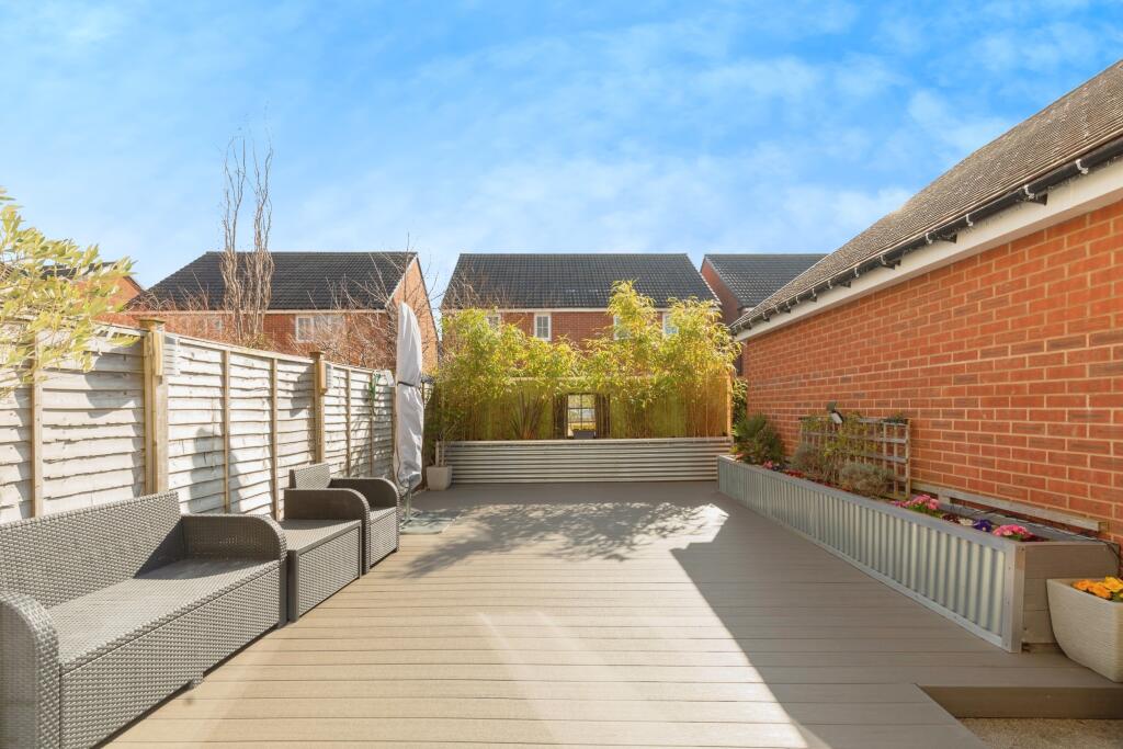 The property is a 4-bedroom, 2-bathroom house with a total area of 1,412.98 sqft situated on a 1,515.56 sqft plot. The list price is £415,000. The property appears to be in excellent condition, with modern fixtures and finishes throughout. The kitchen and bathrooms are contemporary and well-maintained. The images show a well-presented interior and exterior. The property benefits from a rear garden with a decked area, providing additional outdoor space. The average house price in the area is £407,334, with an average price per sqft of £331. This property is slightly above the average price, but given its size (1,412.98 sqft), the price per sqft is slightly below average. The presence of a garden adds value, and the overall condition of the property appears to be excellent. The proximity to several well-rated schools (The Castle School, Manorbrook Primary School, Sheiling School, and St Mary’s Church of England Primary School) is a significant positive factor for families. Considering the property’s condition, the size of the plot, the desirable location, and the proximity to good schools, the list price of £415,000 appears to be reasonably priced, and potentially represents good value for money, when compared to other properties in the area.