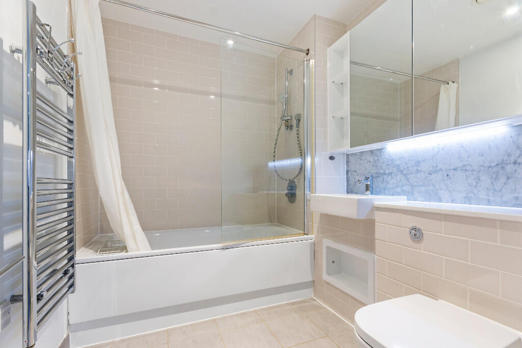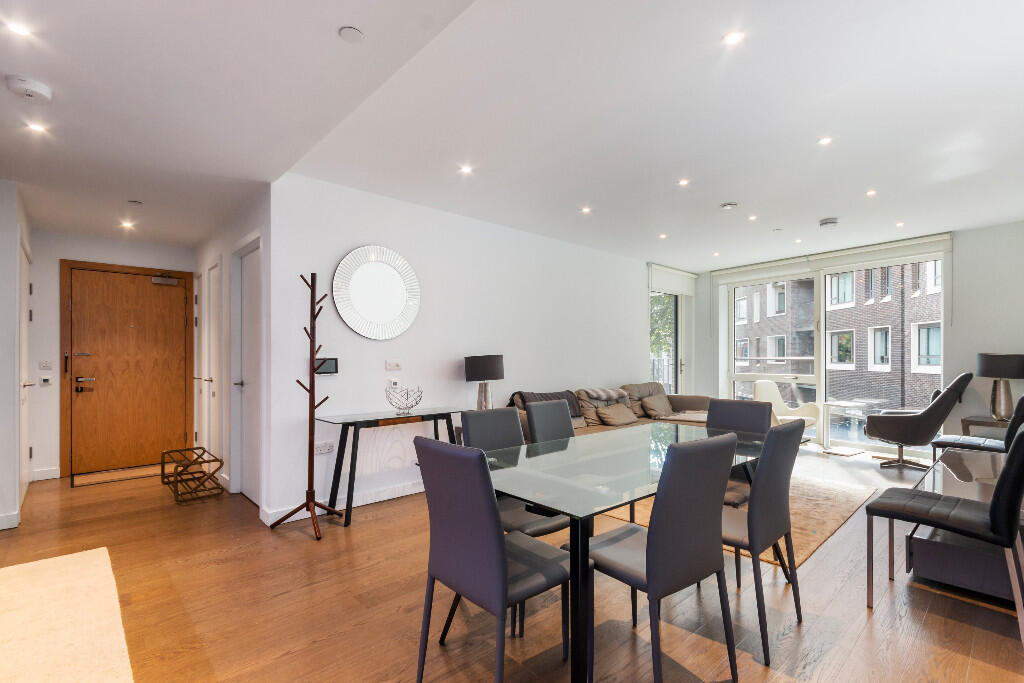 Large, light, lovely and chain free three double bedroom, two bathroom apartment in fantastic condition, with generous front and rear balconies in this award-winning Elephant Park development in Elephant and Castle.