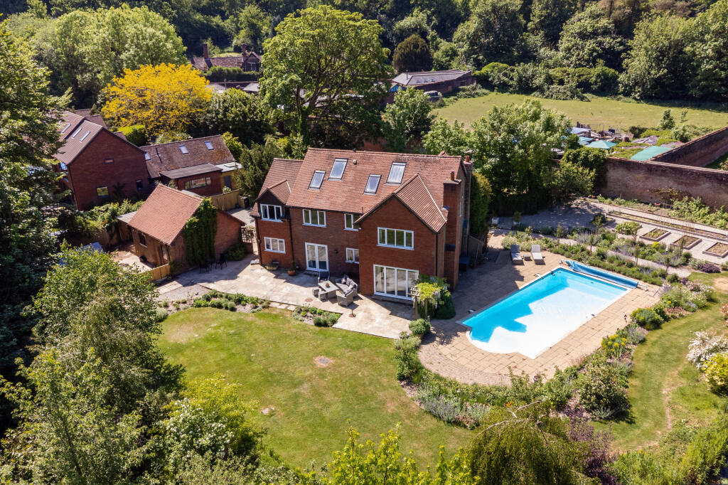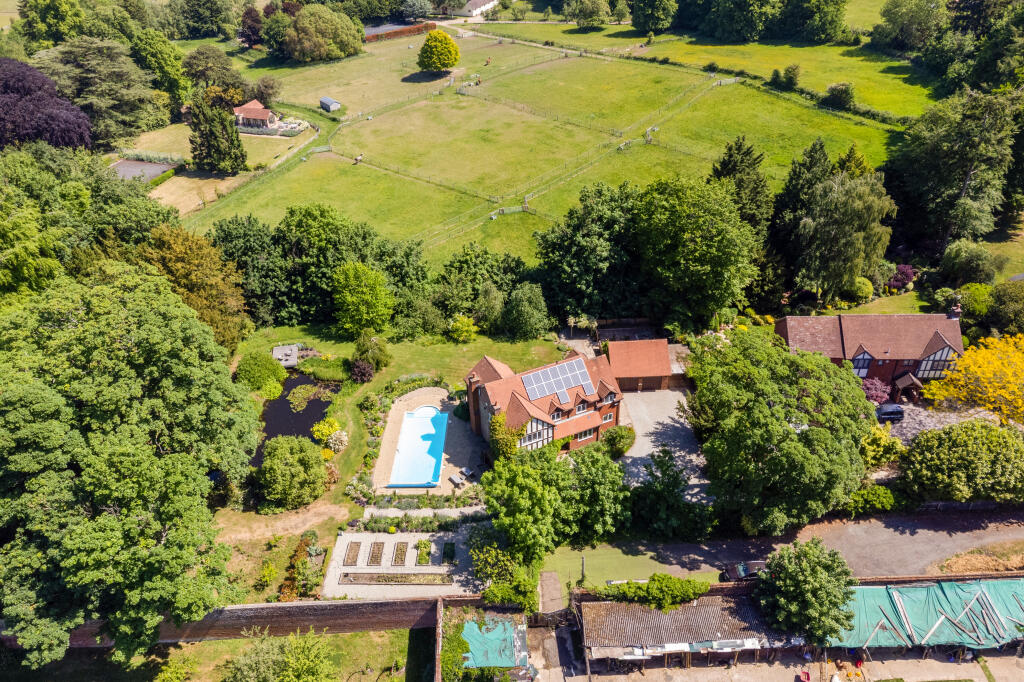 This wonderful detached family home occupies an enviable and picturesque 1.1 acre plot with impressive mature landscaped gardens, outdoor swimming pool and tranquil koi pond backing on to equestrian fields and is situated in the charming village of Headley. Offering generous and versatile living ...