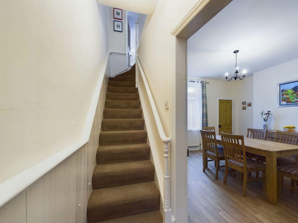 This property is a 4-bedroom, 2-bathroom house located in Whitby, North Yorkshire. Based on the provided images, the property appears to be in good condition, well-maintained, and recently updated. The interior is clean and modern, with updated fixtures and finishes. The exterior also looks to be in good condition. The property has a small, paved backyard. The location is in a residential area of Whitby, close to the town center and transportation links. The nearby streets show a range of property prices, suggesting a diverse housing market in the area. The list price seems reasonable considering the condition of the property, its location, and the number of bedrooms and bathrooms. However, the lack of plot size information makes a complete assessment more difficult.