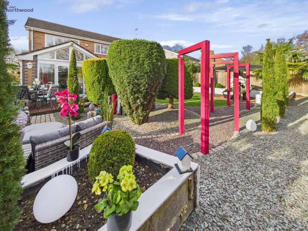 This property is a 4 bedroom detached house located in Trem Yr Eglwys, Wrexham. It benefits from being close to several schools and transport links, including Wrexham Central and Wrexham General train stations. The property itself is in good condition and has been well maintained. The garden is a particular highlight, featuring a professionally designed landscape with mature plants and decorative features. The list price is slightly higher than the average for the area but considering the size, condition, and unique garden, it could be considered reasonable.