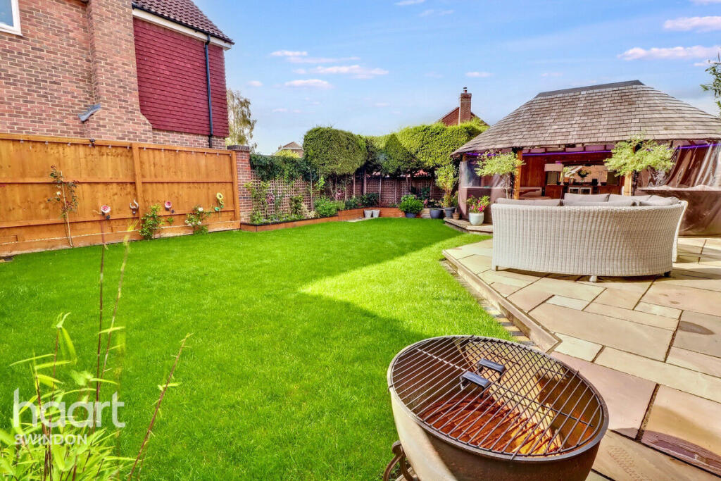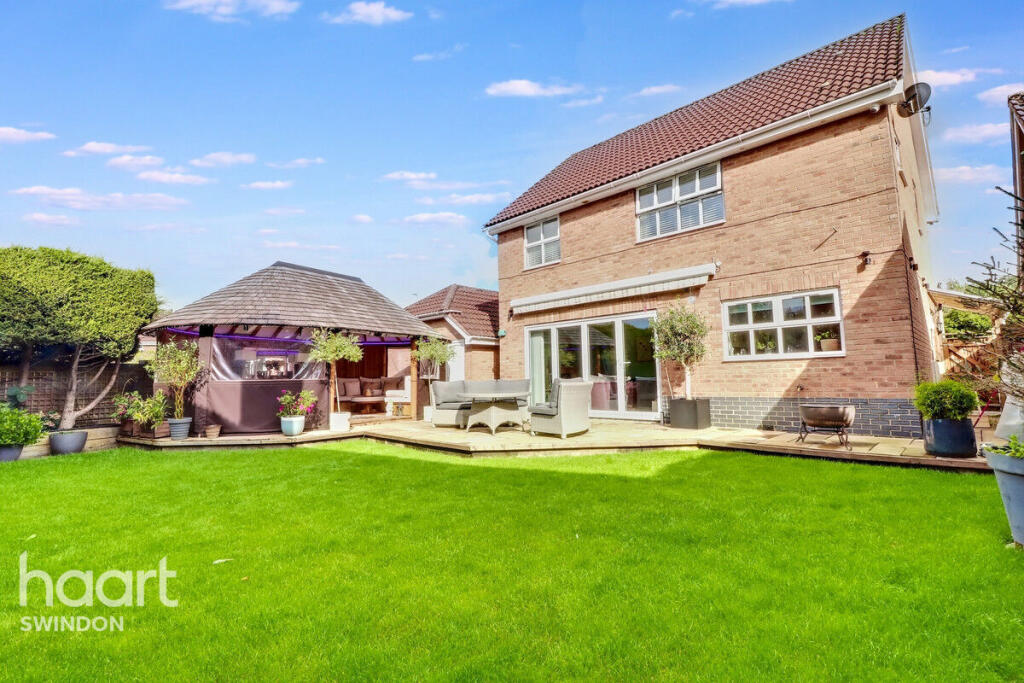 This is a detached property located in Haydon Wick, Swindon, featuring four bedrooms and two bathrooms. The property benefits from a large plot size with a well-maintained garden and a unique outdoor entertainment area. The interior is modern and in good condition. The property is situated in a residential area with nearby schools and transportation links. The listing price is slightly above the average for the area, but the property’s size and features justify the cost.
