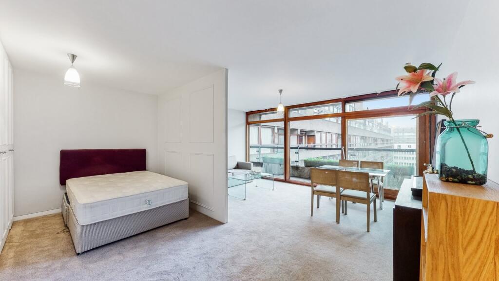 Available early September 2025 A smart and well presented large studio apartment in Breton House in the Barbican. The entrance of the apartment takes you straight into the fitted original marine kitchen and opens out into the studio space where there is a zoned partition between...