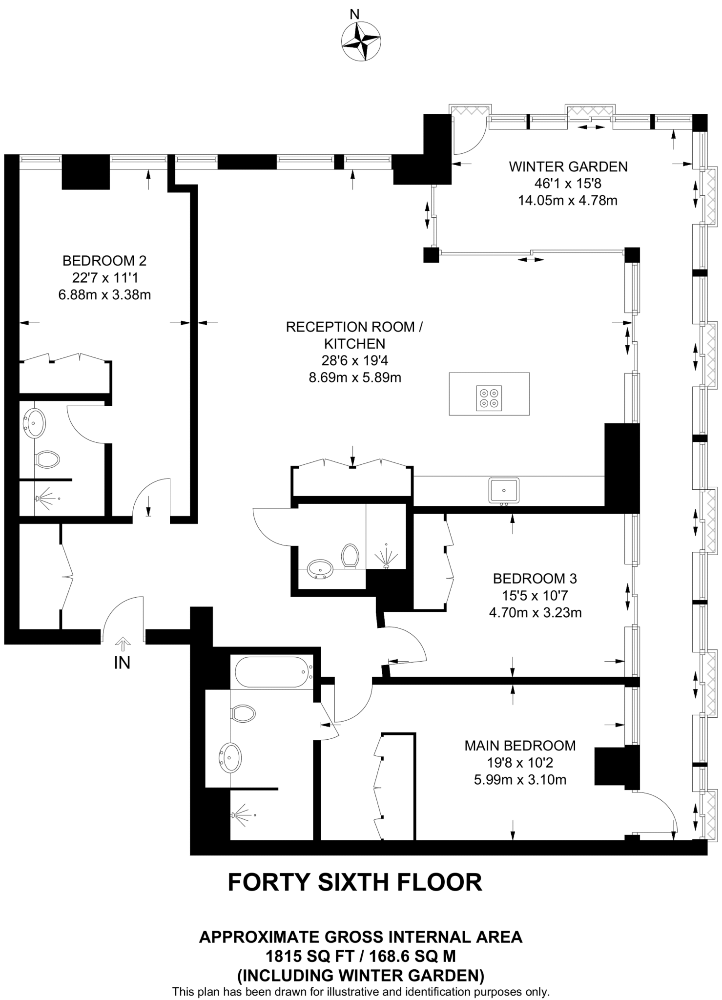 Set on the 46th floor of an exclusive Vauxhall development, this excellent apartment offers 3 double bedrooms, spacious open plan reception room and breath taking views across the City throughout.