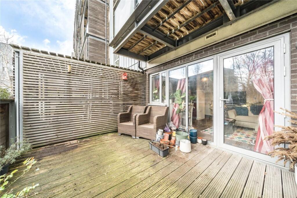 This immaculate one-bedroom apartment has been finished to an exceptional standard and is neutrally decorated throughout. Comprising a spacious open plan reception room with wooden floors and modern kitchen with integrated appliances, beautiful decked private garden, generous master bedroom with ...