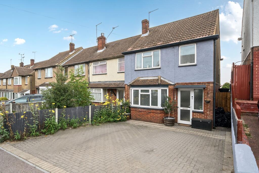Three bedroom, end of terrace home with front driveway and rear garden with potential for further parking at the rear. Close to Hilltop Primary, Strood Station, just 32 mins to London. Call MOXY now!