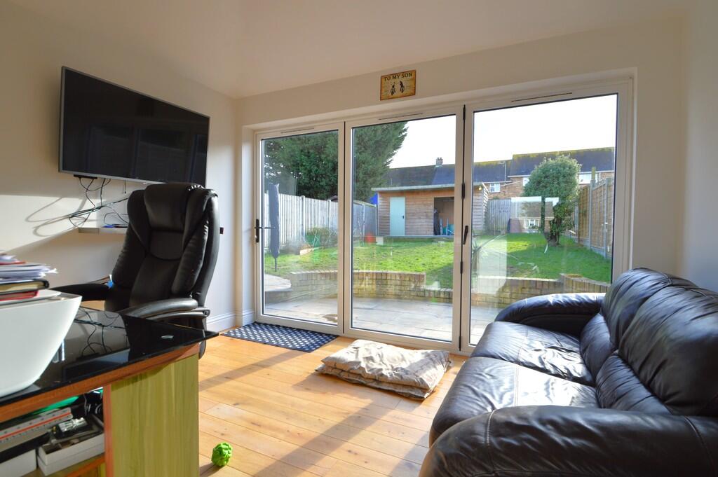 A very well presented, extended two bedroom end of terraced house featuring surprisingly well proportioned, flexible accommodation. Three reception rooms, very impressive kitchen, two double bedrooms, south facing rear garden with outbuilding and off road parking bay for two large vehicles.