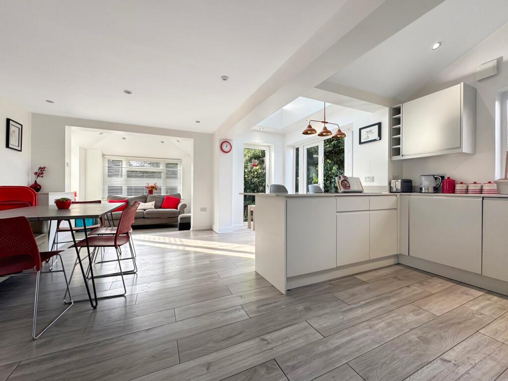 This four-bedroom, two-bathroom property located at Canterbury Grange, Bocking, Braintree offers a blend of modern living and a desirable village location. The property benefits from a recently updated kitchen and extension suggesting a modern interior. Images showcase a spacious, open-plan kitchen-diner with access to the garden, suggesting an ideal space for entertaining and family living. The extension adds significant living space. The garden is of a good size; however, the exact dimensions are not provided. The presence of nearby schools, such as Bocking Primary School just 0.29km away, is a significant advantage for families. While the property benefits from a good location with desirable attributes, the overall property is of reasonable size for a family home.