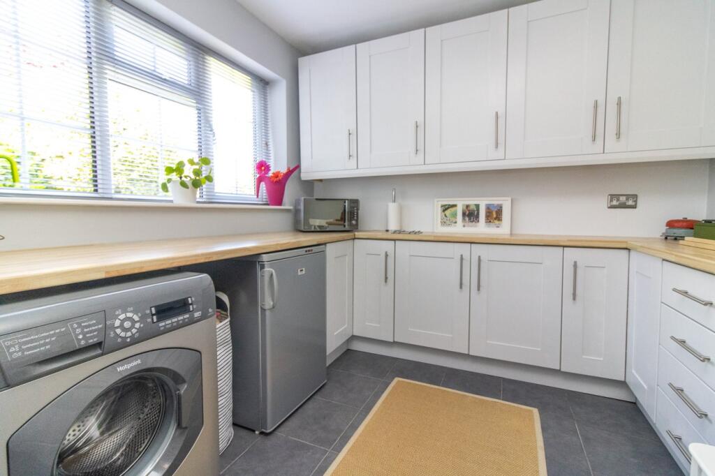 This property is a 4-bedroom, 2-bathroom detached house located in Crofters Close, Glenfield, Leicester. The property benefits from a garage and a garden. The house is presented in good condition throughout and appears well-maintained, with a modern kitchen and bathrooms. The internal décor is neutral and contemporary, creating a light and airy feel. The location is within reasonable proximity to local schools, including Glenfield Primary School (rated ‘Good’ by Ofsted) and Lady Jane Grey Primary School (rated ‘Outstanding’). Transport links appear to be easily accessible via nearby train stations.