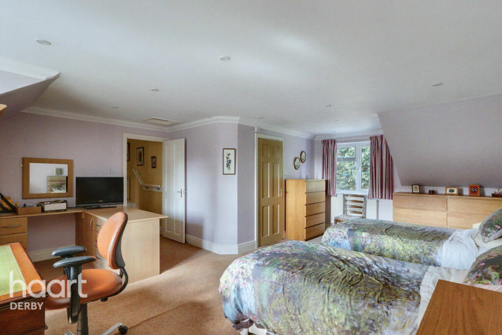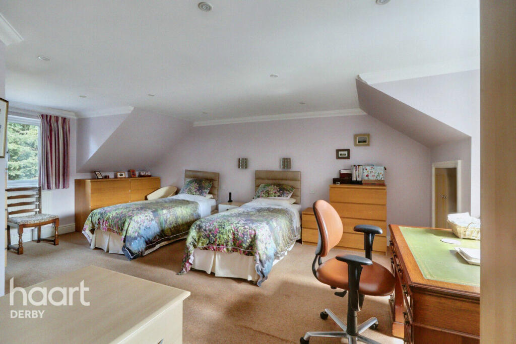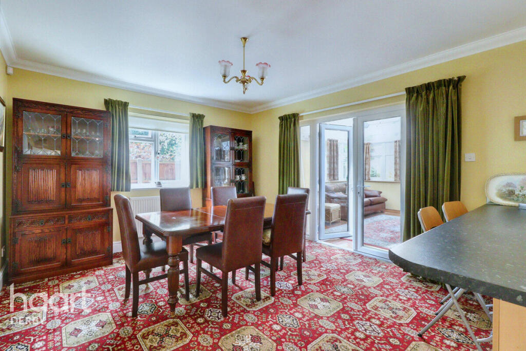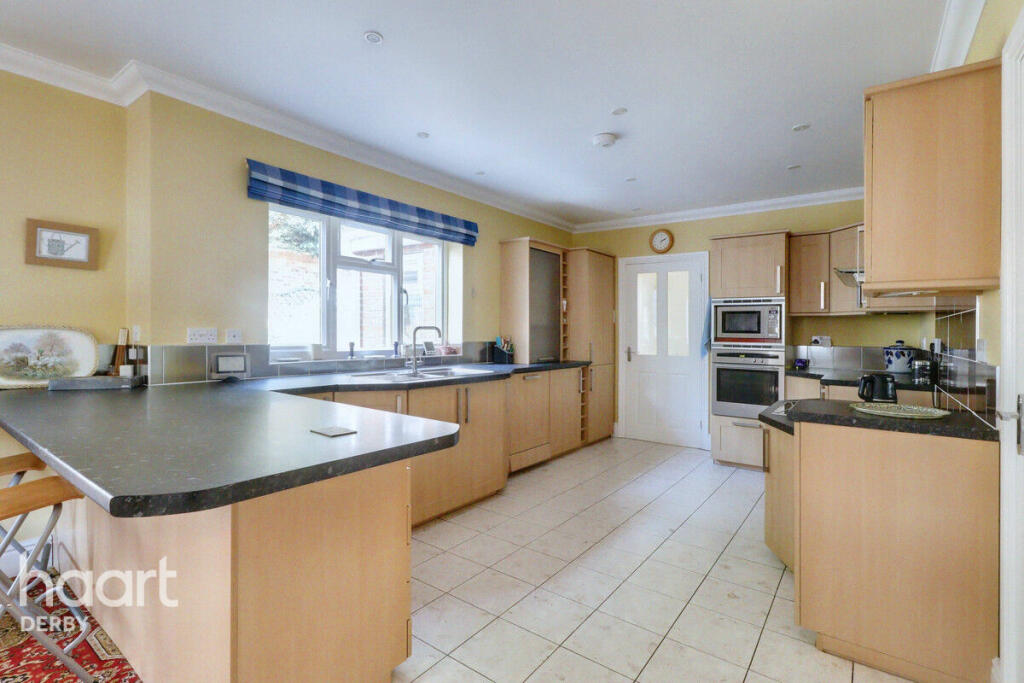 This four-bedroom detached house located on Burleigh Drive in Darley Abbey, Derby, presents a compelling proposition for potential buyers. The property’s location within Darley Abbey is a significant advantage, given the area’s reputation for quality housing, its desirable amenities, and the relatively peaceful and affluent nature of the neighbourhood. The relatively close proximity to Derby city centre provides easy access to employment, retail, and cultural opportunities, while the rail links (as indicated by the proximity to Derby station) offers convenient travel options. The property itself boasts substantial living space; the images reveal a large kitchen-diner with an island counter, several double bedrooms, and a conservatory, suggesting plenty of room for a family. The external appearance is appealing and well maintained; a sizeable driveway provides ample parking. The garden appears relatively large and offers potential for both recreation and further landscaping. However, the interior design seems somewhat dated, and there’s potential for modernisation in the kitchen and bathrooms, which, whilst functional, don’t appear to reflect the most contemporary style. In conclusion, the property represents a significant investment but also an opportunity to personalize a family home in a much-sought-after location within Derby. Buyers should consider the need for some modernisation in relation to the list price.