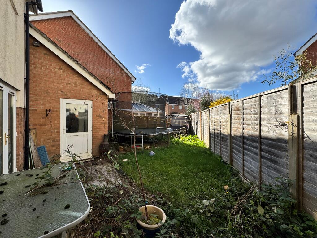 Based on the images provided, the property is in need of significant modernisation and renovation. The interior shows worn flooring, dated fixtures and fittings, and requires a full redecoration throughout. The garden also appears unkempt.