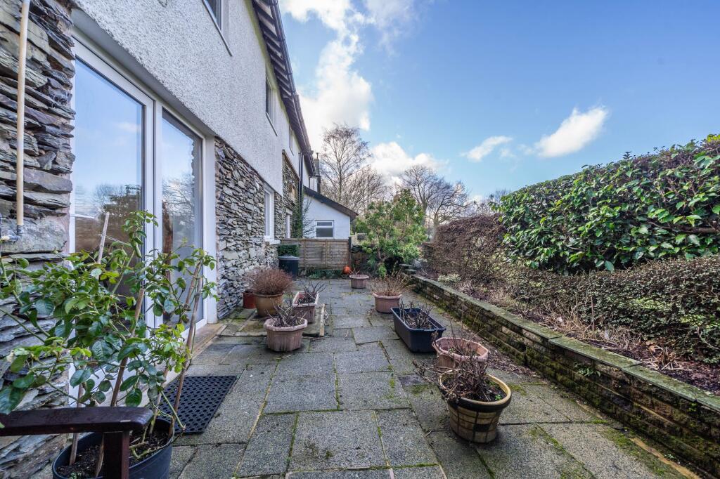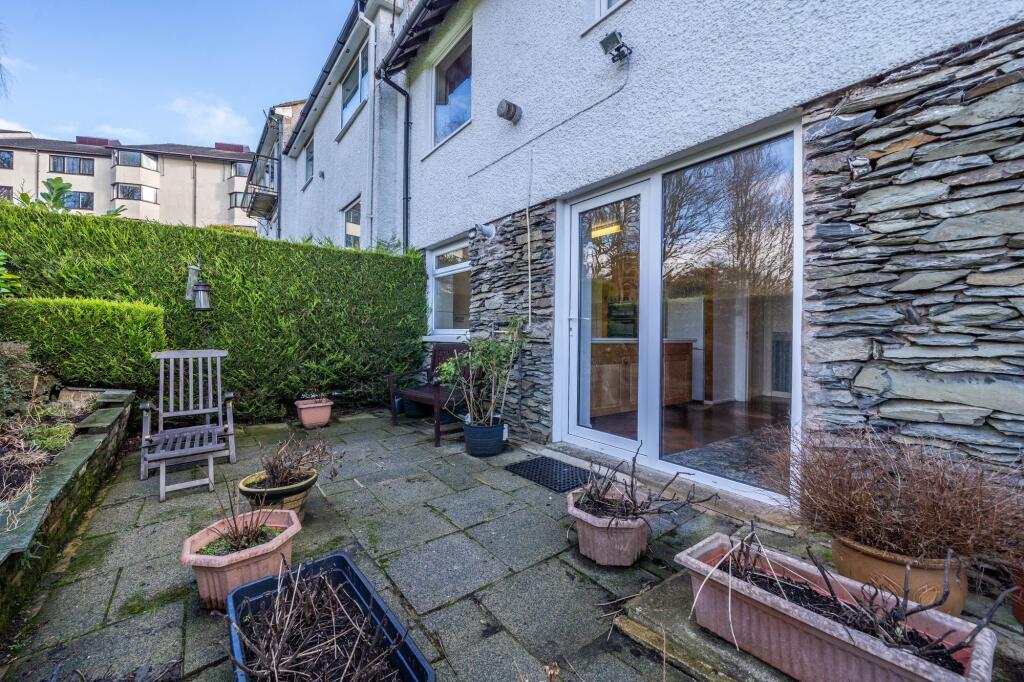 A terraced property located in Windermere comprising: sitting/dining room, kitchen/diner, three bedrooms, two bathrooms, rear garden, garage & driveway parking. No chain. EPC Rating D. Council Tax D.