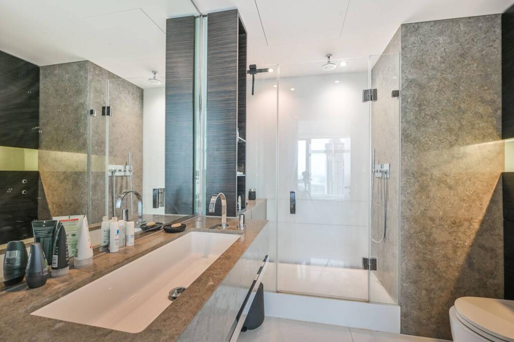 LONG LET. This stylish two bedroom flat situated on the thirty-fifth floor of this sought-after development with a range of communal facilities and concierge, benefits from balcony with brilliant views towards the River.