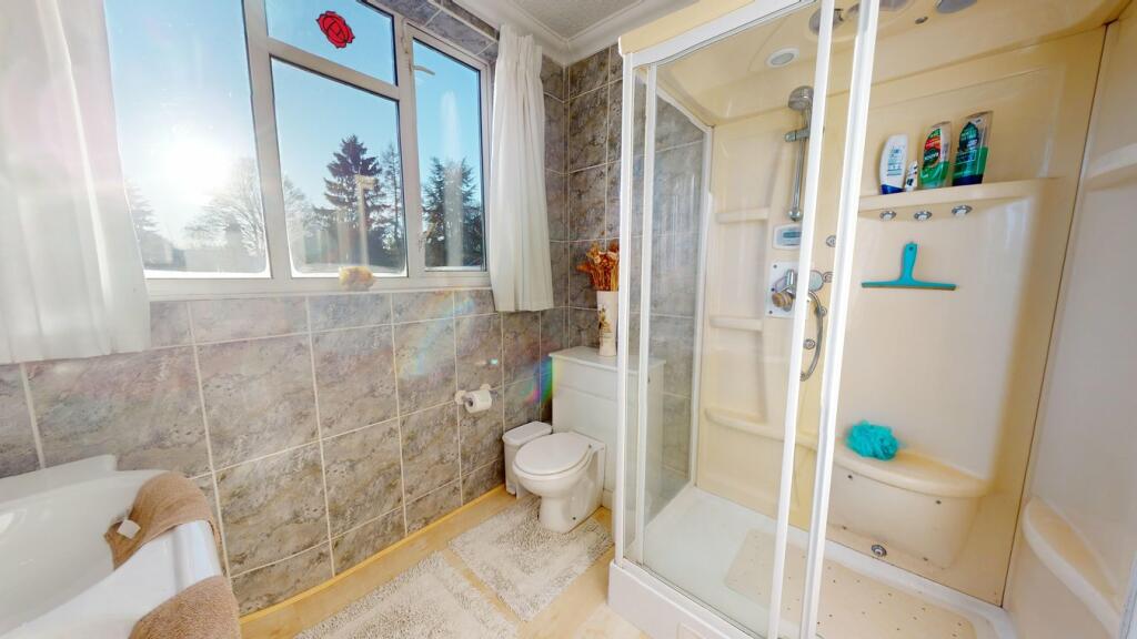 Generously sized family house. Four bedrooms over two floors, two reception rooms, extensive plot and gardens with conservatory, Large patio, Master suite with en suite shower room. Ample parking.
