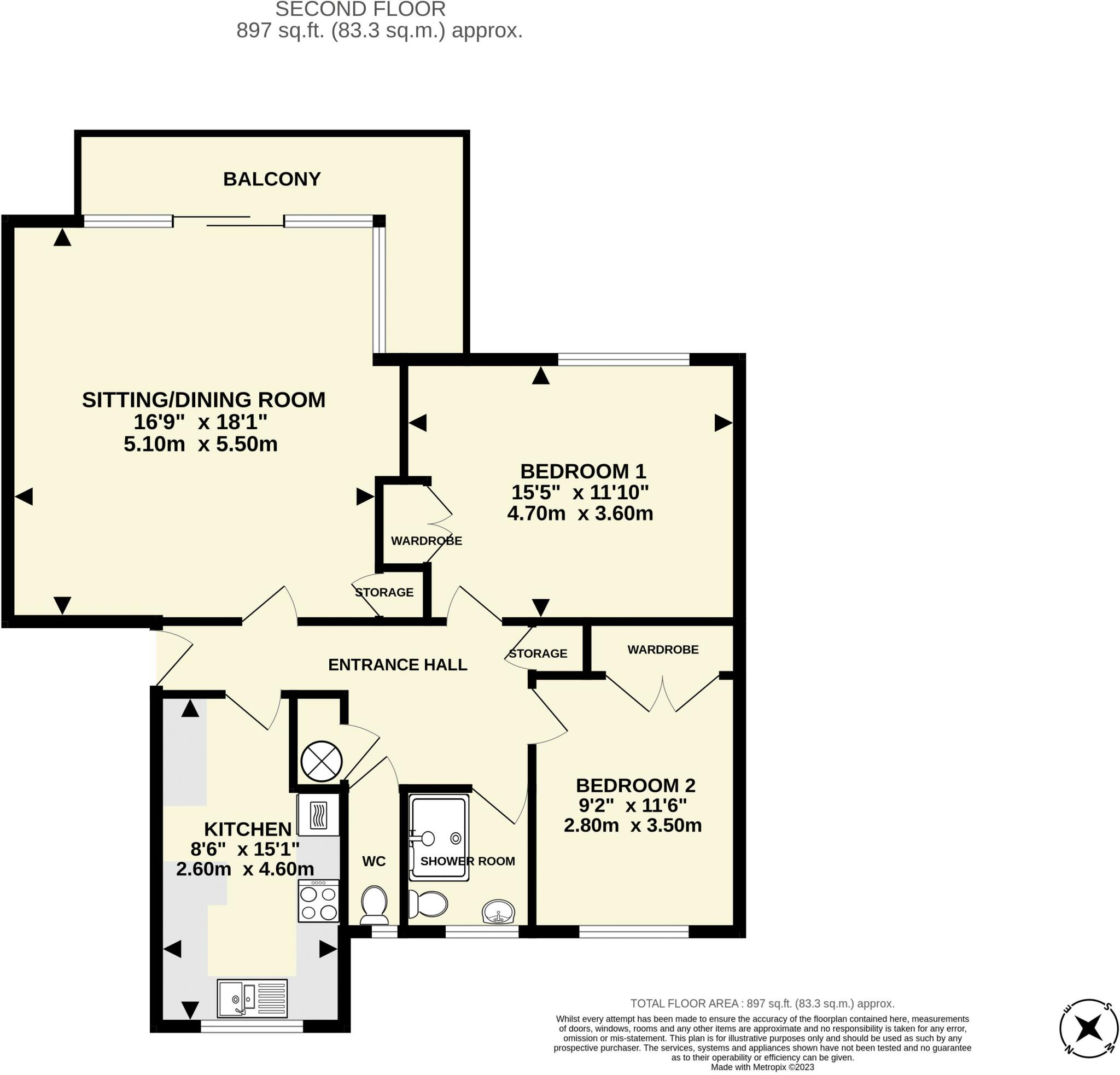 A spacious second floor purpose built flat situated in a desirable and convenient location and with stunning south easterly views to the sea.
