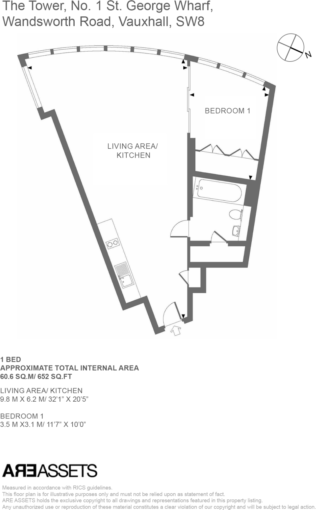 A 1 bedroom apartment nested at the prestigious development of The Tower in Vauxhall.