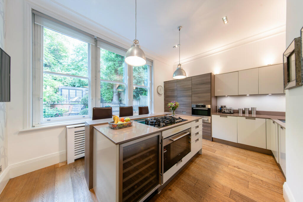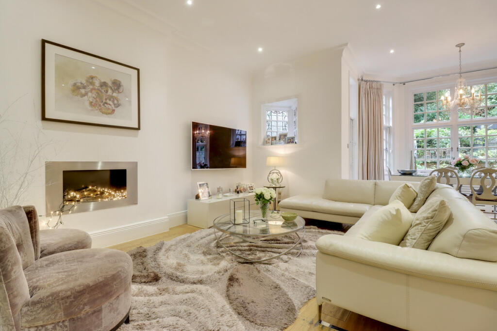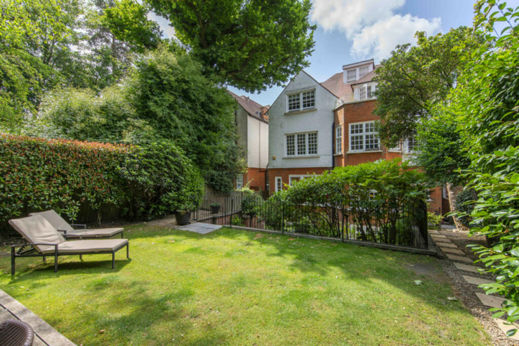 An elegant and beautifully presented four-bedroom apartment with a large private rear garden, located on one of Hampstead’s wide tree-lined roads