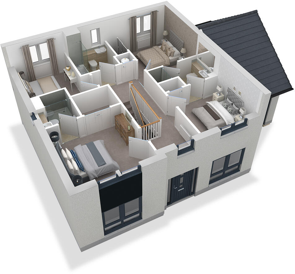 The Lochalsh is an exceptional home featuring open plan Ashley Ann kitchen/breakfast room. Integrated appliances by Bosch. Integral garage. Walk in wardrobe & en suite to main bedroom. Jack & Jill en suite & fitted wardrobes to bedrooms 2 & 3.