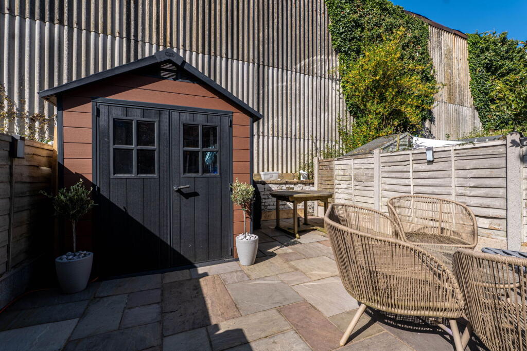 This three-bedroom terraced house in Macclesfield is located on Garden Street, within the Hurdsfield area. The property benefits from being close to local amenities and transport links, with Macclesfield train station approximately 0.51km away. Schools such as Tytherington School (rated “Good” by Ofsted) are also within a reasonable distance. The house itself appears to be in good condition, with a modern kitchen and updated fixtures. The images show a well-maintained interior. While the plot size is listed as 0.00 sqft, the photos reveal a small, paved patio area with a shed, providing some outdoor space. Compared to similar properties in the area, with an average price of £233,383 and an average price per sqft of £287, the list price of £195,000 appears to be competitive, particularly considering its proximity to amenities and transport.
