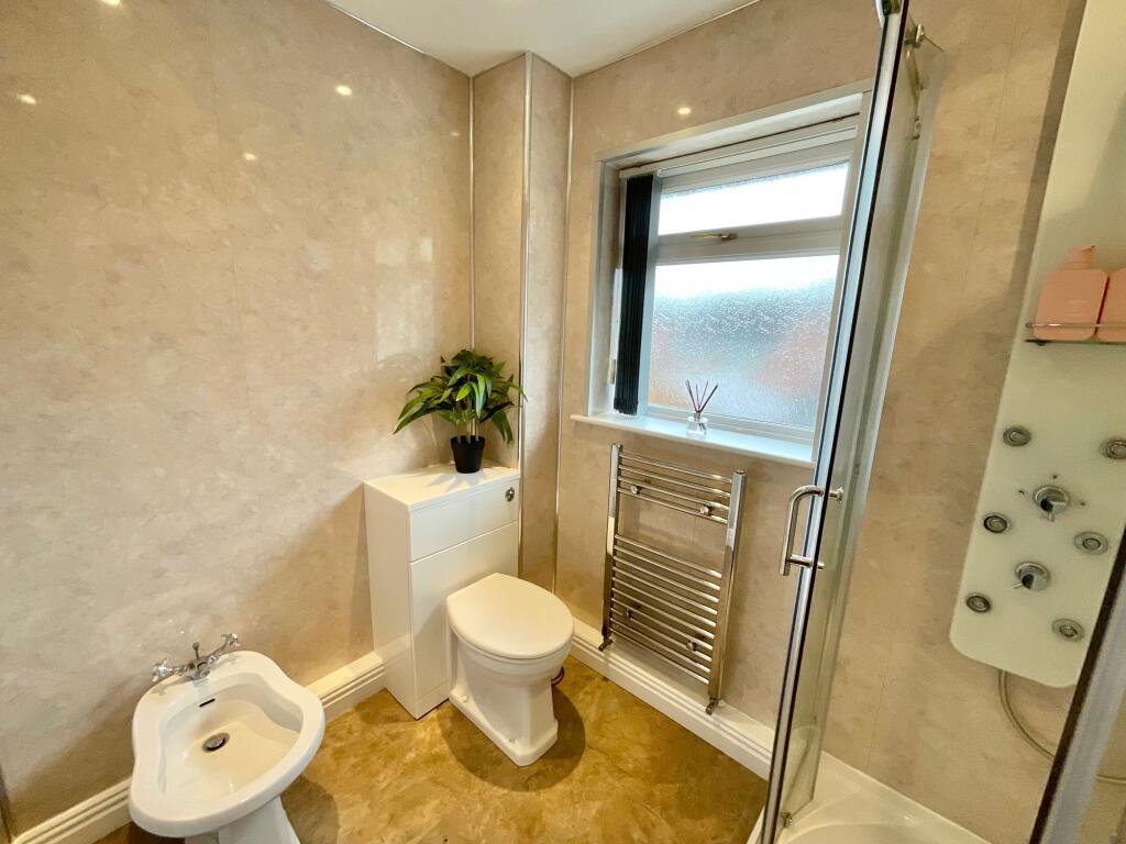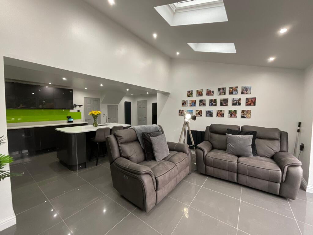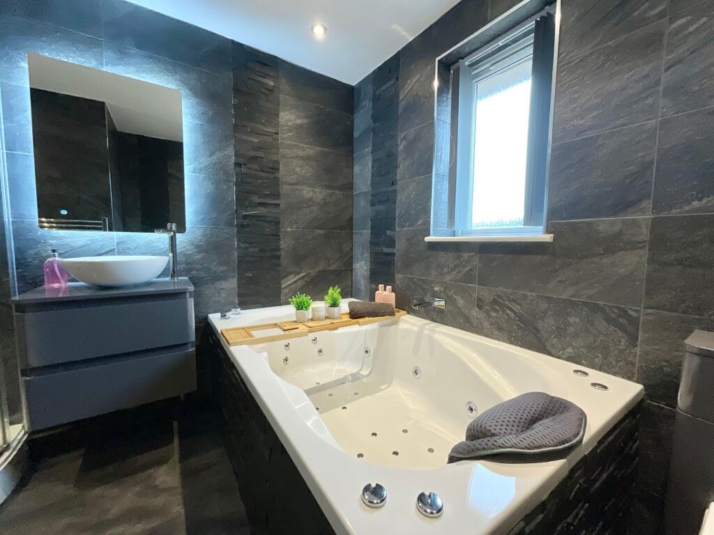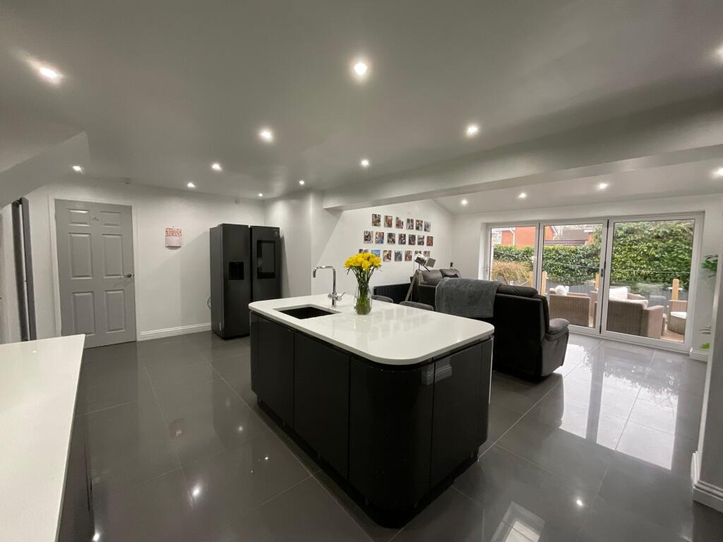 The property is a 4-bedroom, 3-bathroom detached house located in Stoke-on-Trent, Staffordshire. It has a total area of 1,555.70 sqft and sits on a plot of the same size. The list price is £325,000. Considering the average house price in the area is £292,744 and the average price per sqft is £254, this property’s price per sqft is significantly higher. However, the property appears to have undergone significant renovations, as evidenced by the modern kitchen and bathrooms shown in the photographs. The high-quality finishes and updated design features suggest a higher-than-average standard of finish, which may justify the higher price per sqft compared to the area average. The inclusion of a substantial garden and decking area adds further value. The proximity to schools and transport links is also a positive factor influencing the overall desirability and potential price. More information on the condition of the property would be needed to make a more accurate assessment of the price.