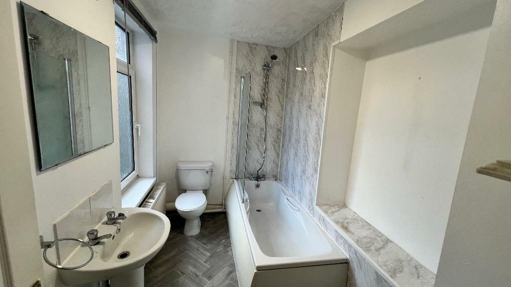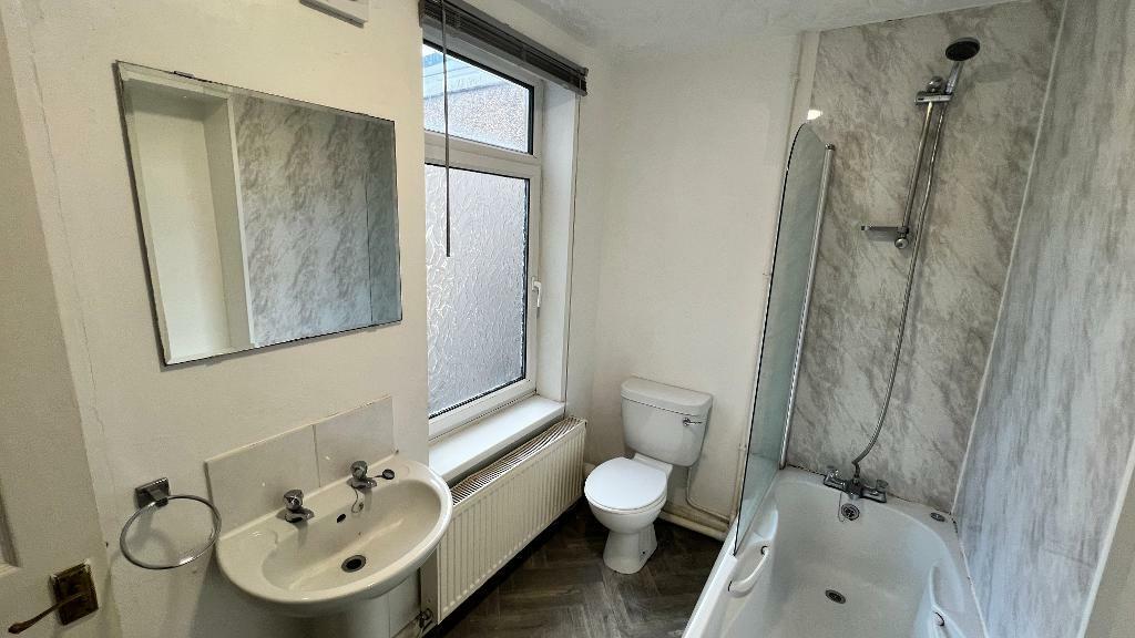 Mid tce, three bed property PENTREBACH. Porch leading to living room, fitted kitchen with stand alone cooker, upstairs bathroom, enclosed rear garden. Excellent access to A470 and heads valleys. NO CH...