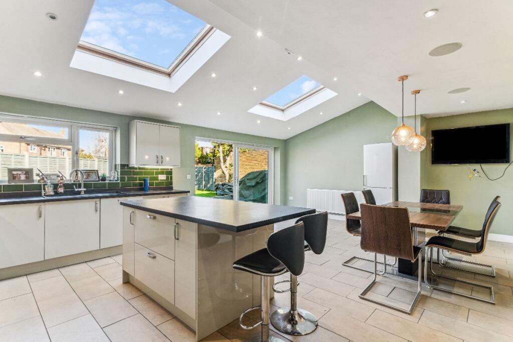 The property is a four-bedroom, two-bathroom house with a total area of 2,244.28 square feet. The list price is £760,000. The property benefits from a rear garden. The images show a property that appears to have undergone some modernisation and extension work, particularly to the kitchen area. The kitchen extension is a significant addition, adding considerable living space and improving the overall quality of the property. The rest of the house appears well-maintained, though some areas show signs of needing updating. Considering the average house price in the area is £507,463 and the average price per square foot is £449, this property is significantly above average in terms of both price and size. However, the property’s size (2,244.28 sqft) is more than double the average size (1,128 sqft) in the area. The property also benefits from a garden, which is a desirable feature. The nearby listings show a range of prices, with some properties significantly cheaper and others more expensive. The higher-priced properties are typically larger or have more desirable features. The location appears to be good, with nearby schools (St Mary’s Cofe Controlled Primary School, Byfleet, rated as ‘Good’ by Ofsted) and railway stations (Byfleet & New Haw, West Byfleet). The proximity to these amenities increases the desirability of the property. Given the property’s size, location, apparent condition, and the presence of a garden, the list price of £760,000 appears to be in line with the market, though at the higher end of the spectrum. The extensive renovation work to the kitchen area likely contributes to the higher price.