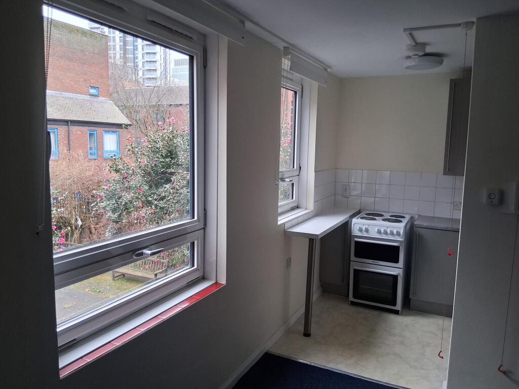 First floor flat, 1 double size bedroom, open plan living room and kitchen, good storage throughout, oven supplied, bath.