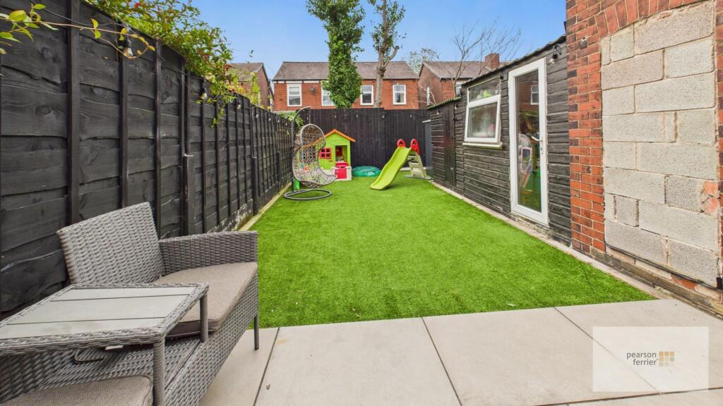 This is a three-bedroom semi-detached property located on Solness Street in Moorside, Bury. The house features a modern kitchen and bathroom. It also benefits from a garden with a shed. The property is situated within a reasonable distance of local schools. The asking price of £235,000 is slightly below the average for the area, making it a potentially attractive purchase.