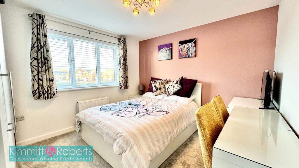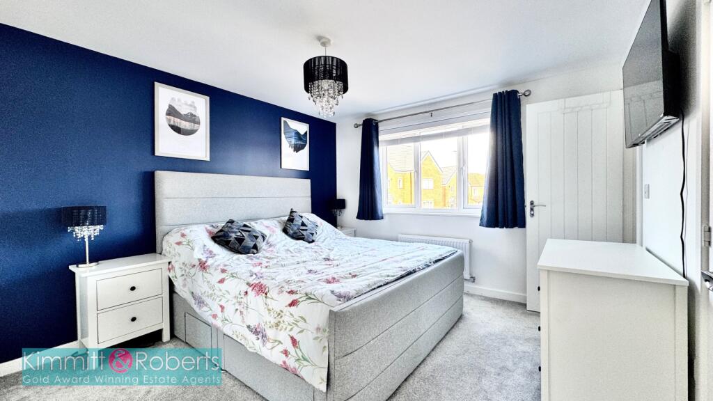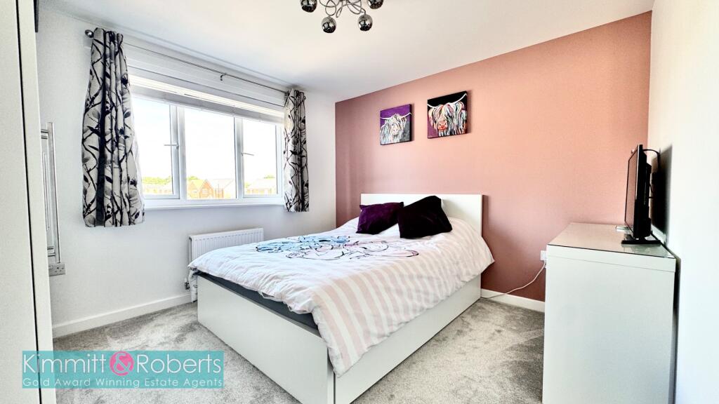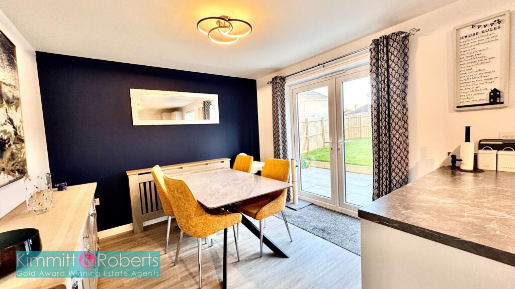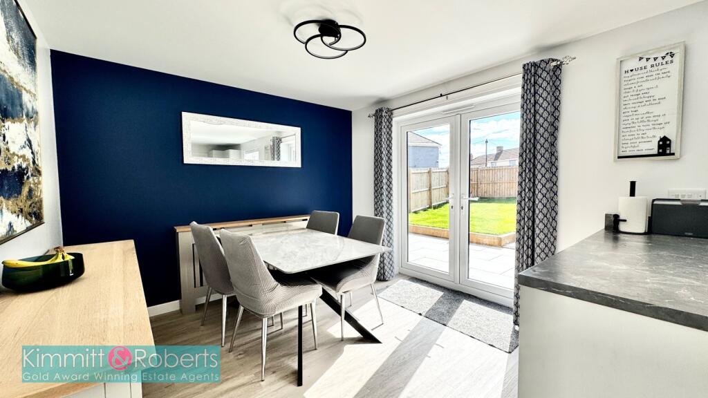 Stunning detached residence featuring an ensuite master bedroom, porcelain tiled patio areas, double driveway, integral garage, ground floor WC, and utility. Prime location within Persimmon Homes Development.