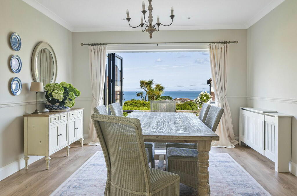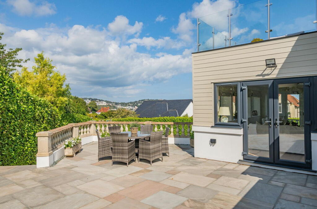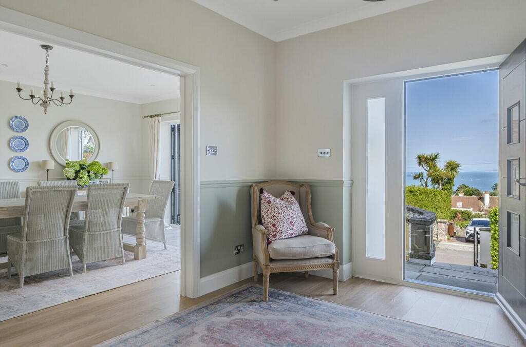 This property in Mead Road, Torquay offers a luxurious coastal lifestyle. The house is a substantial, recently renovated, detached property. The interior showcases a modern and well-appointed design, boasting multiple reception rooms, a well-equipped kitchen, and generously sized bedrooms. The property benefits from stunning sea views visible from several rooms and its outdoor areas. There are well-maintained gardens and patios for outdoor entertaining. The proximity to Torquay town centre and train station provides convenient access to amenities and transport links, while the nearby good Ofsted-rated schools are a major benefit for families. The lack of precise plot size data and some absence of comparable property information in the vicinity makes a precise valuation challenging, but the quality of the renovation and the desirable location support its high price point. Overall, this is a well-presented luxury property likely to appeal to buyers seeking a high-quality coastal home with excellent views and outdoor space.