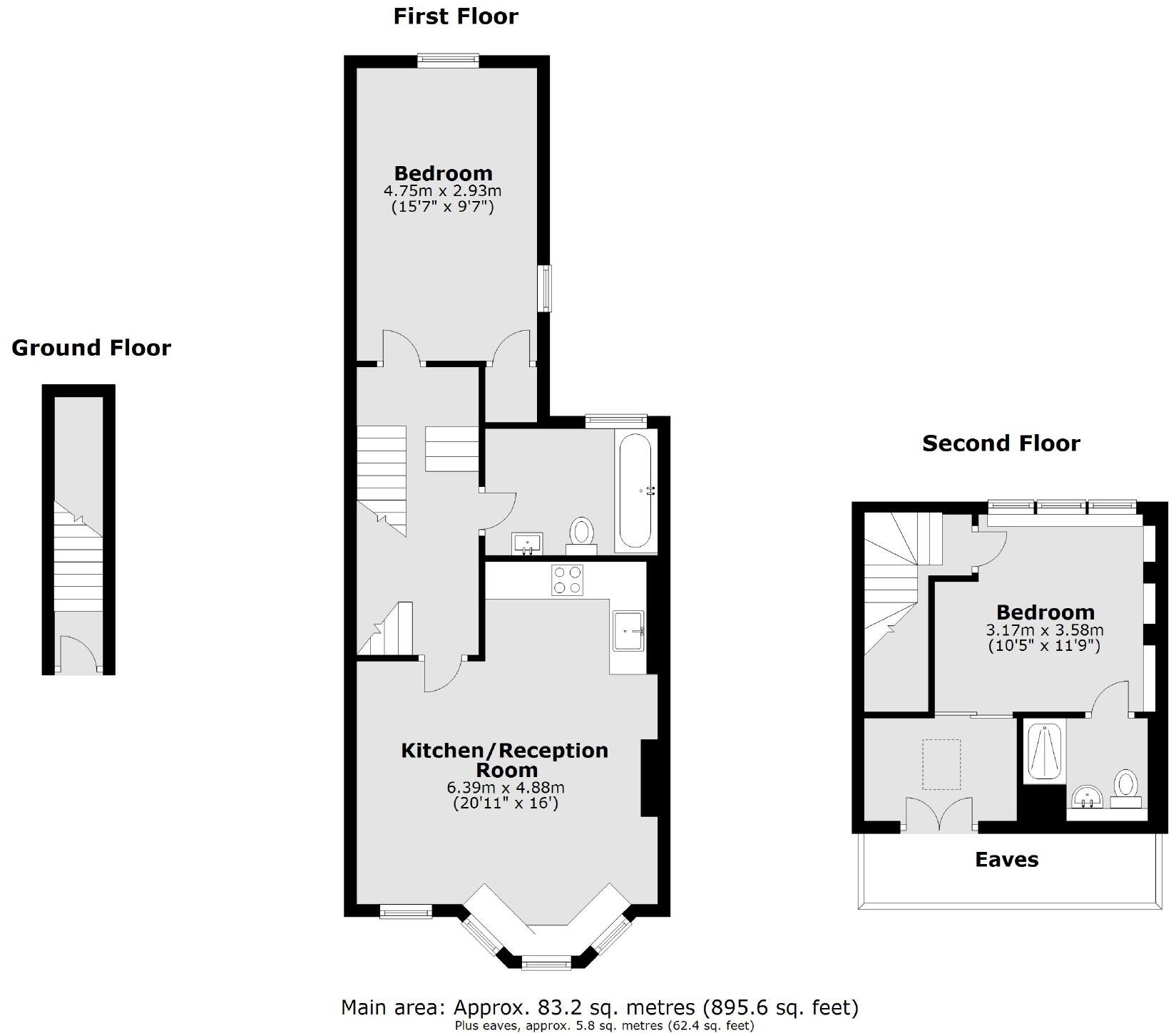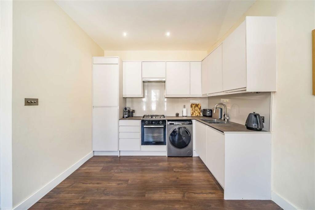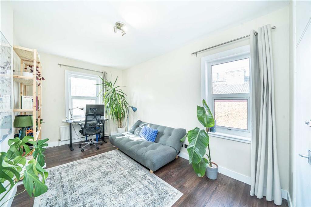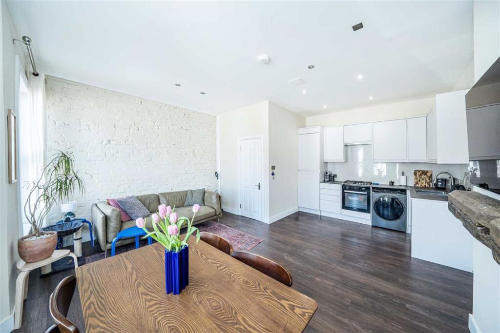 This split-level apartment forms the top two floors of this Victorian house. The first floor has a large open-plan kitchen and reception room, a large double bedroom, and a family bathroom. The second floor comprises the master bedroom, en suite, and walk in wardrobe.