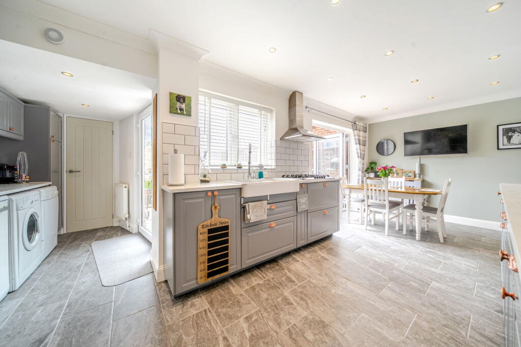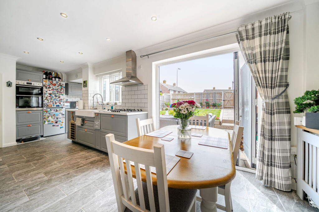 A smartly presented three-bedroom family home, thoughtfully upgraded by the current owners, featuring a beautifully refitted kitchen/dining room.
