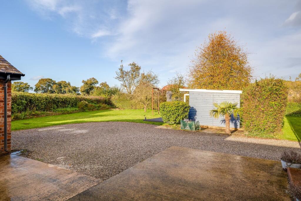 The property benefits from a substantial garden, offering ample outdoor space. The garden is well-maintained and provides a tranquil setting.