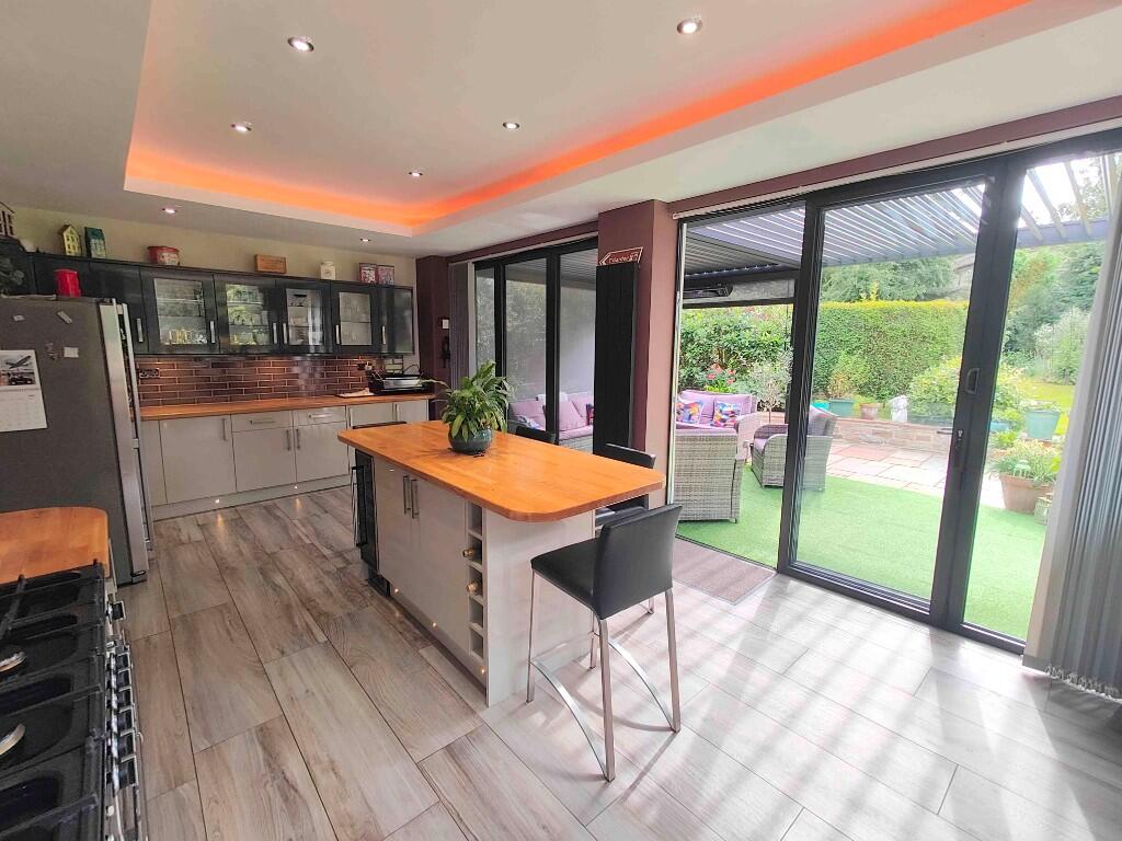 Whispering Spinney is a detached property located on Beechwood Road in Halifax. The house features four bedrooms and appears to be in good condition, with modern interior finishes. The property benefits from a large garden, a patio area, and ample parking space. The location offers a balance of accessibility and a quieter living environment, with nearby schools and transportation links. However, the list price of £675,000 seems high compared to the average property price in the area.