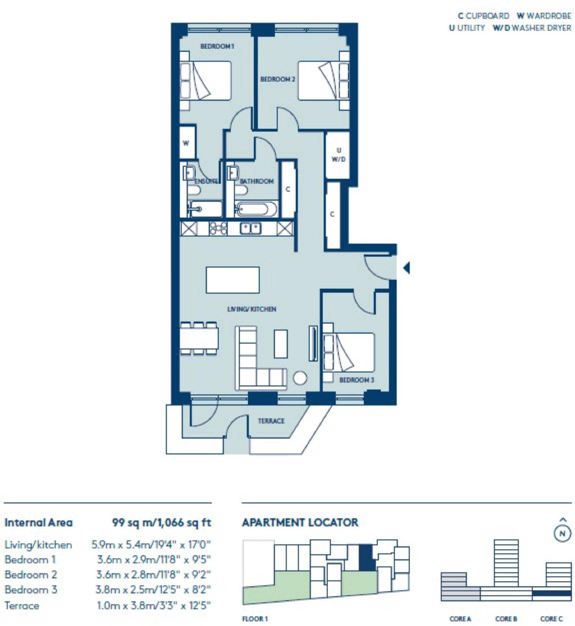 A stylish three bedroom apartment in this new development finished to the highest standard throughout. Further benefits include an en-suite bathroom, private terrace and concierge service.