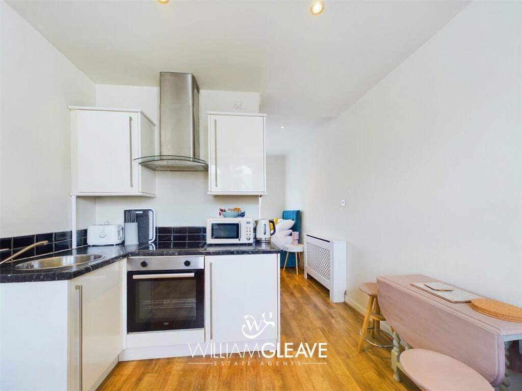 Located in the town centre is this first floor studio apartment, which offers a bright and spacious interior and in brief comprises; modern fitted kitchen with dining and sitting area, opening through into bedroom area with modern shower room off. There is an off road parking space to the front. ...